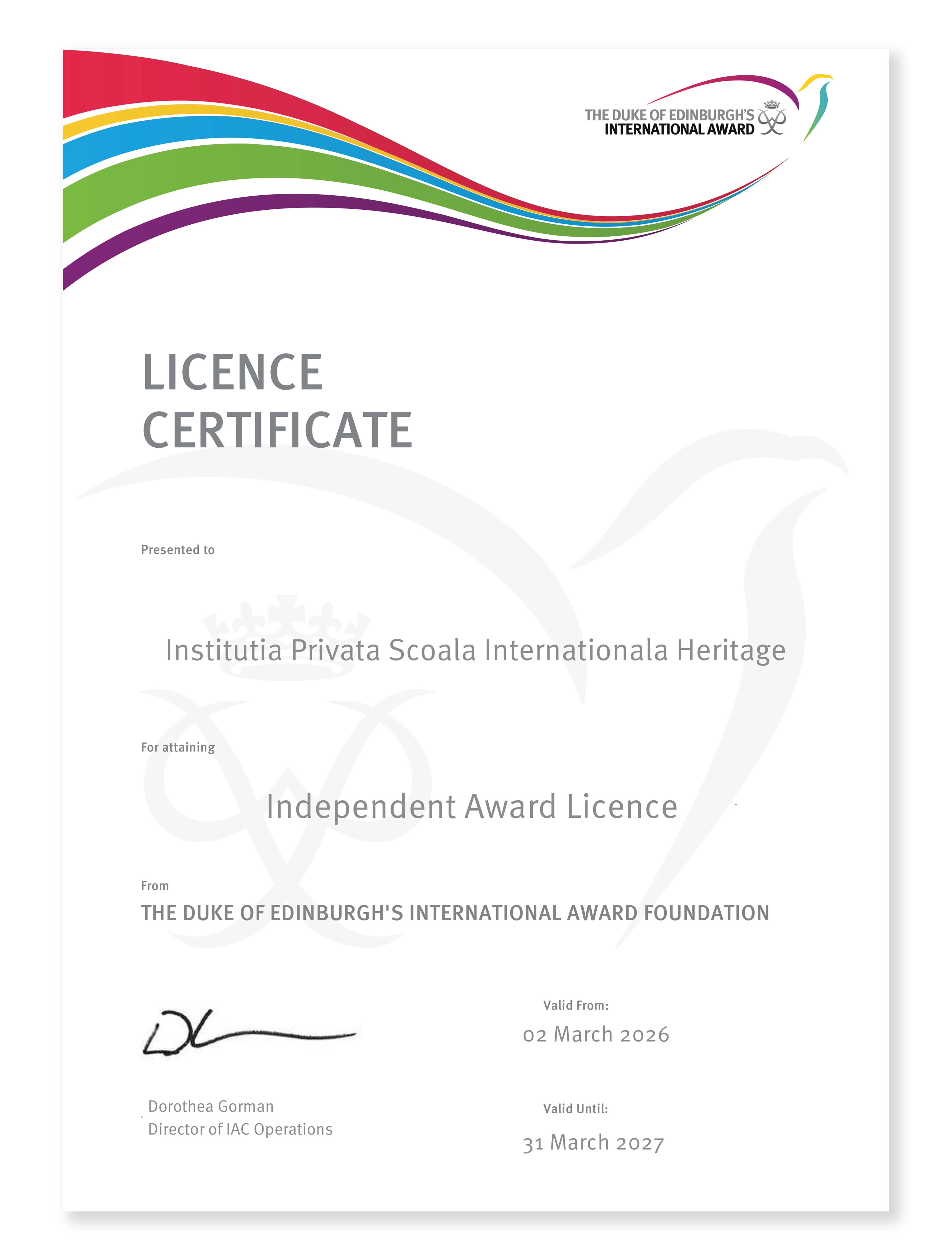 If you have any questions about the programme, you can contact us at dofe@heritage.md