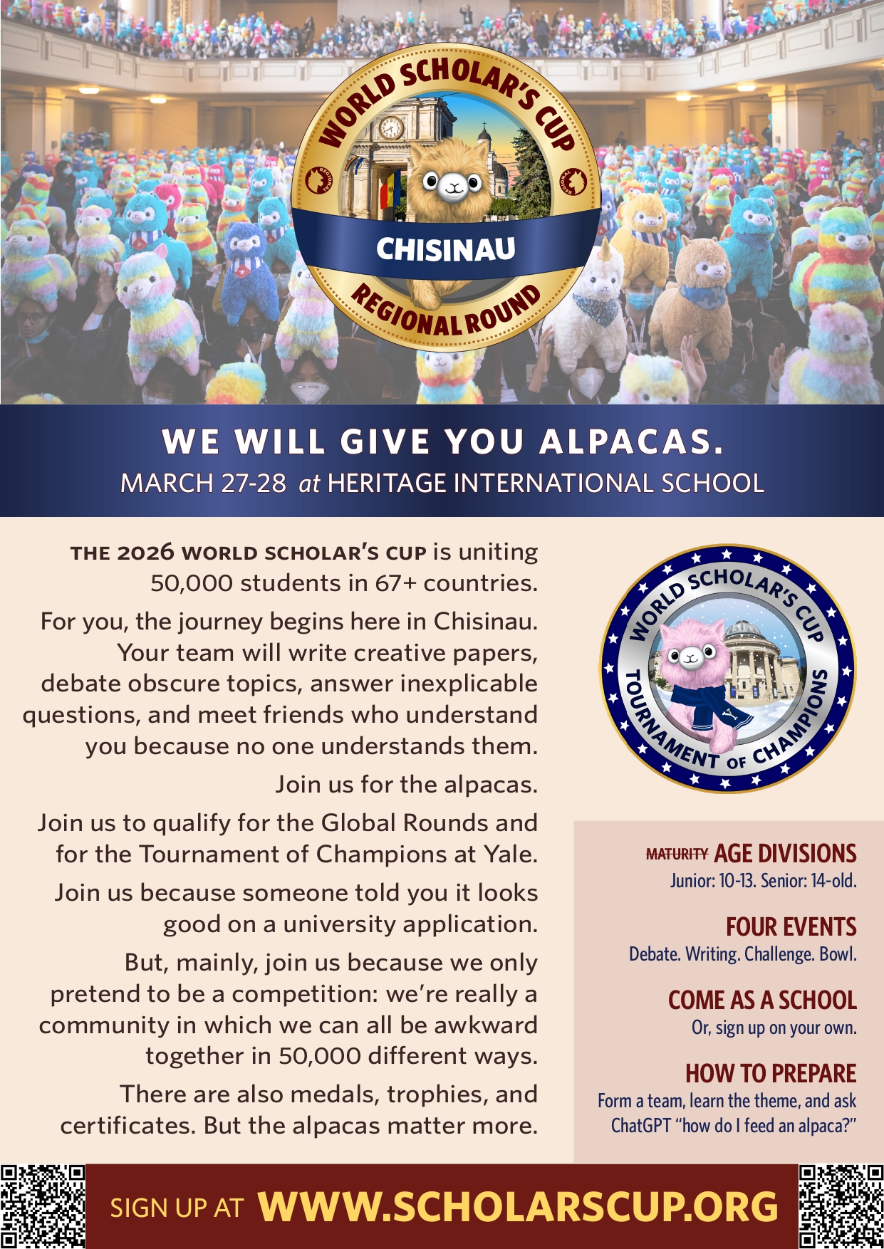 The theme of this edition is “Are We There Yet?”. Students who prove they are the best in the Regional Round hosted by Heritage can qualify for the Global Round and the Champions Tournament, held at Yale University. The 2026 Global Rounds will take place in Dubai, Kuala Lumpur, Prague, Seoul, Shanghai, Christchurch, Bangkok, and Da Nang.