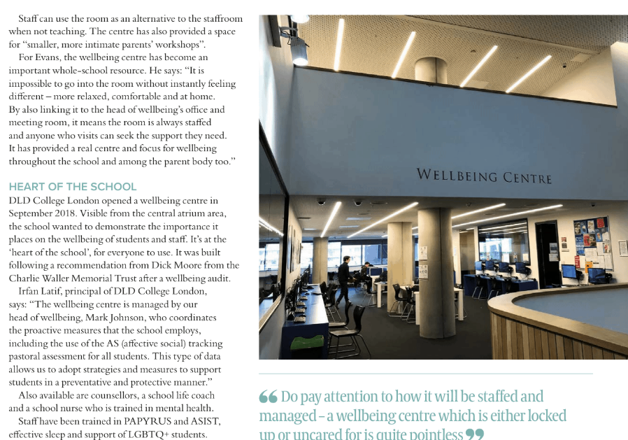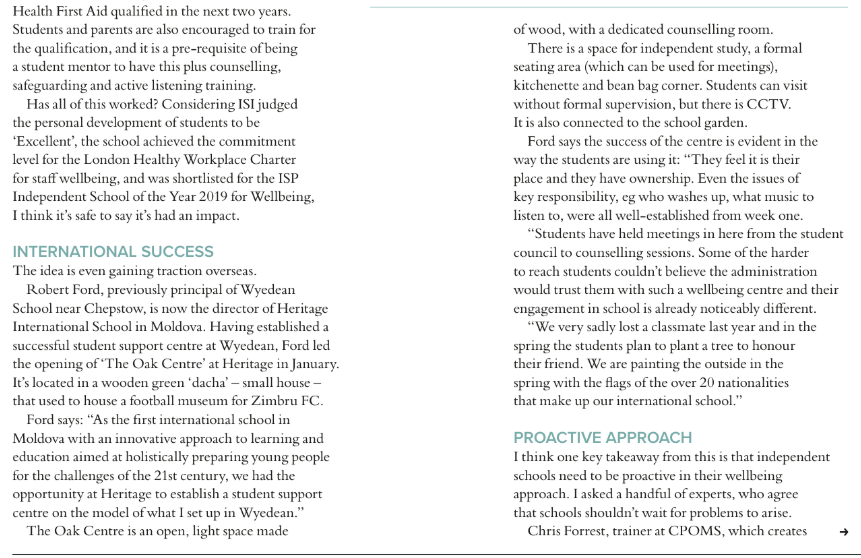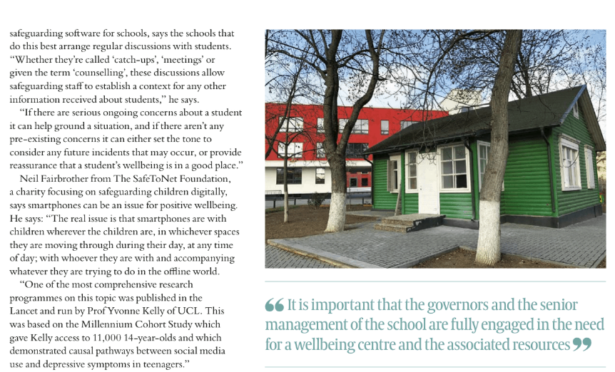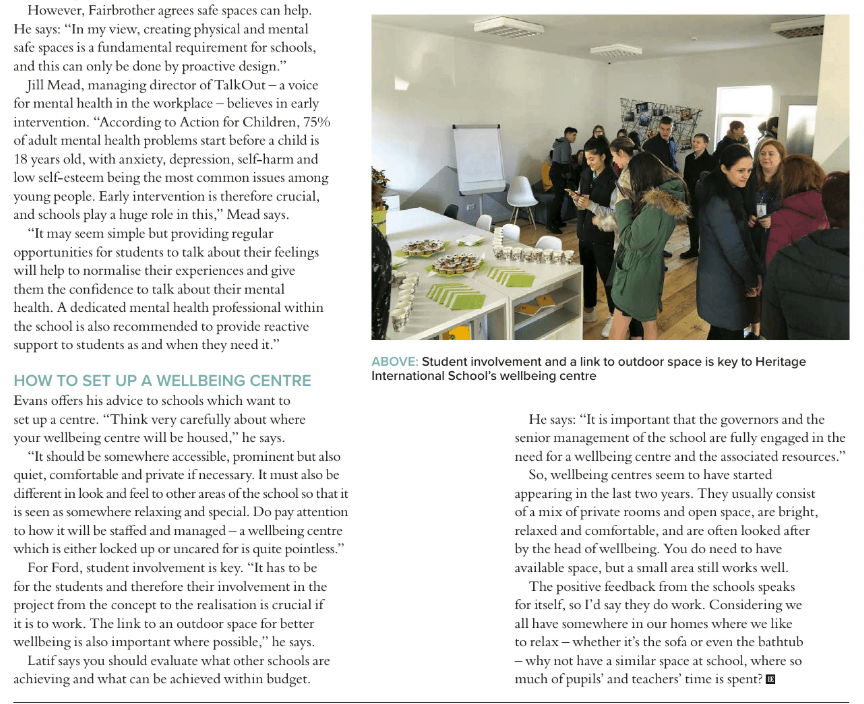 Our school and our "Oak Centre" was featured in the "International Education Today" magazine, as a model of 'breathing spaces' for students.