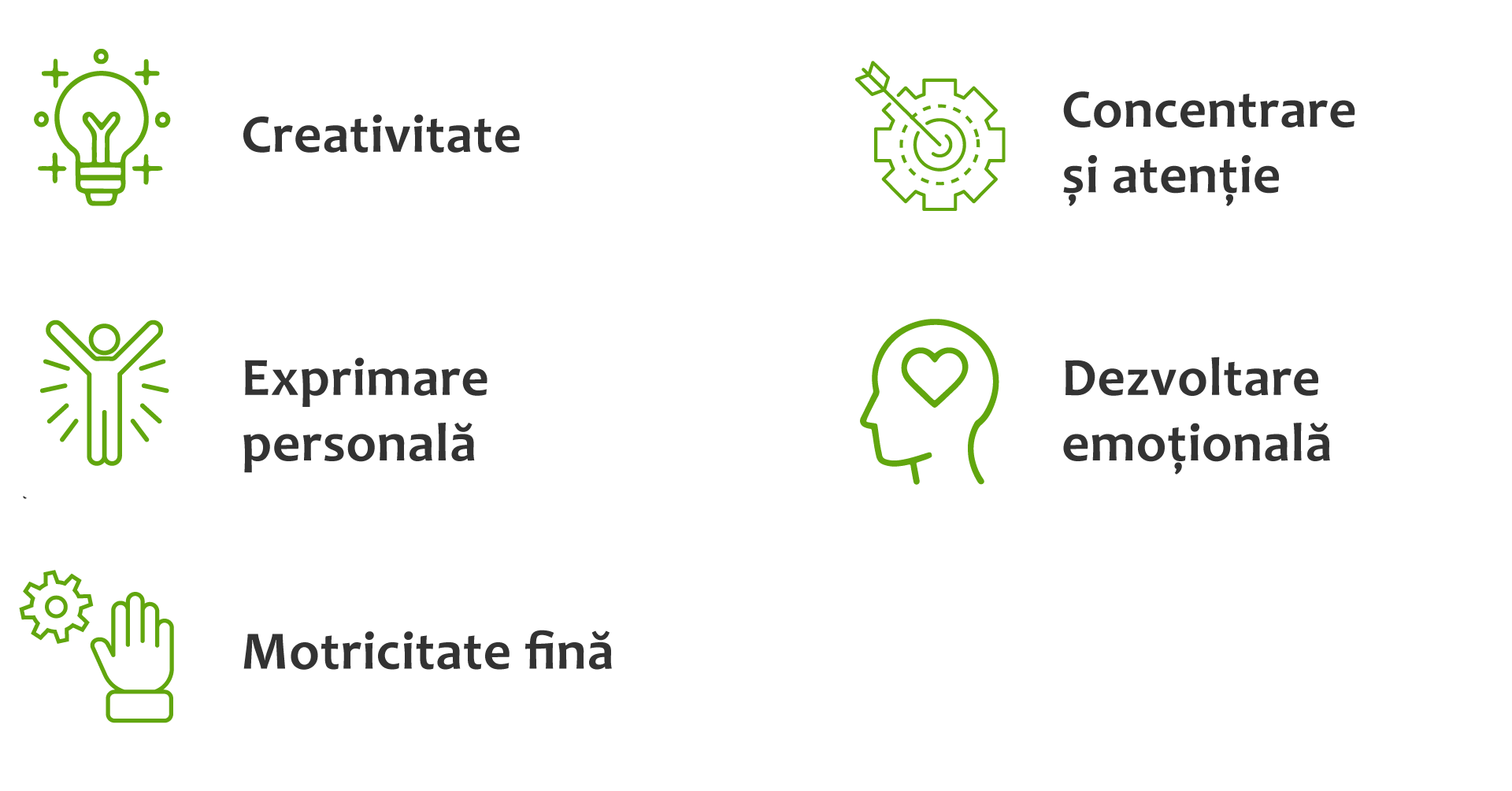 Beneficii: Elevii dezvoltă motricitatea fină, creativitatea, imaginația, concentrarea și răbdarea. Clubul sprijină totodată dezvoltarea emoțională, atenția la detalii și perseverența prin activități bazate pe proiecte.